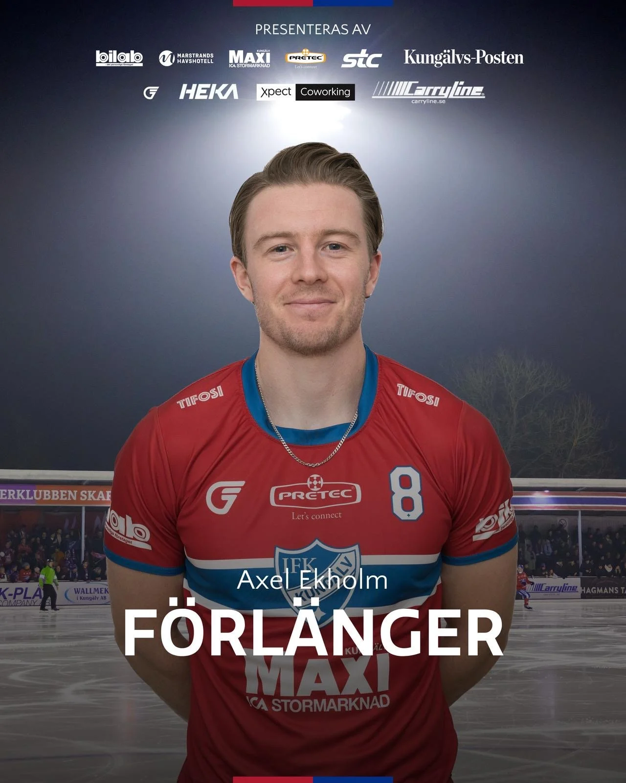 IFK Kungälv kan idag stolt meddela att vår lagkapten, Axel Ekholm, har valt att förlänga sitt kontrakt. En nyckelspelare både på och utanför isen, Axel är en spelare som personifierar klubbens hjärta, kämpaglöd och ambition.